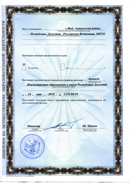 | Адрес местонахождения образовательной организации* | 368743, Республика Дагестан, Ахтынский район, с.Фий ул Джабраила Гашумова.140 |