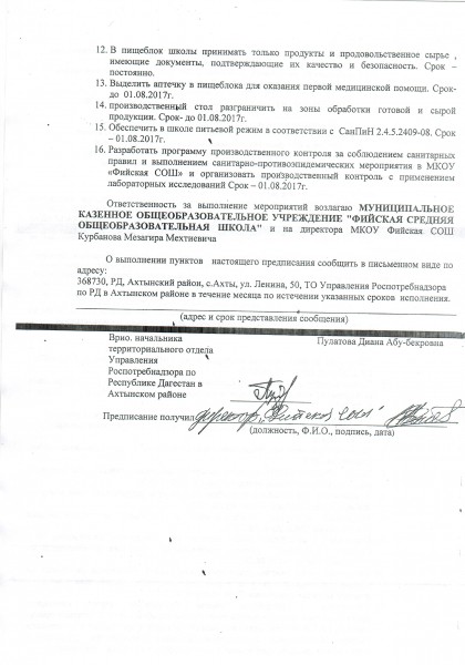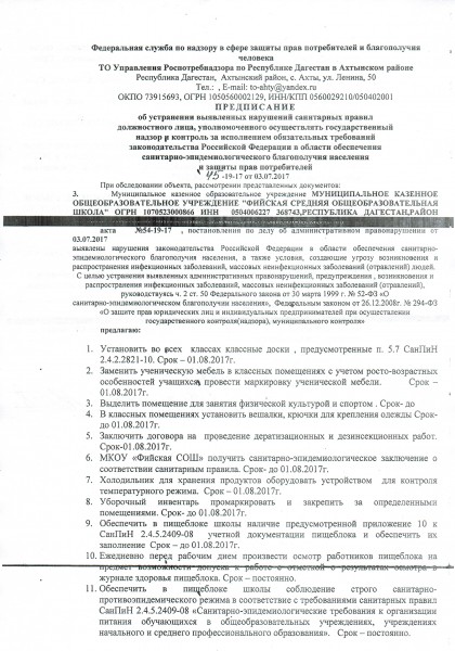 Предписания органов, осуществляющих государственный контроль (надзор) в сфере образования, отчеты об исполнении таких предписаний (при наличии)